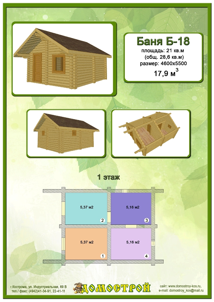 Дом Б-18 Размер: 4600х5500, Бревно D220: 17,9 м3 |