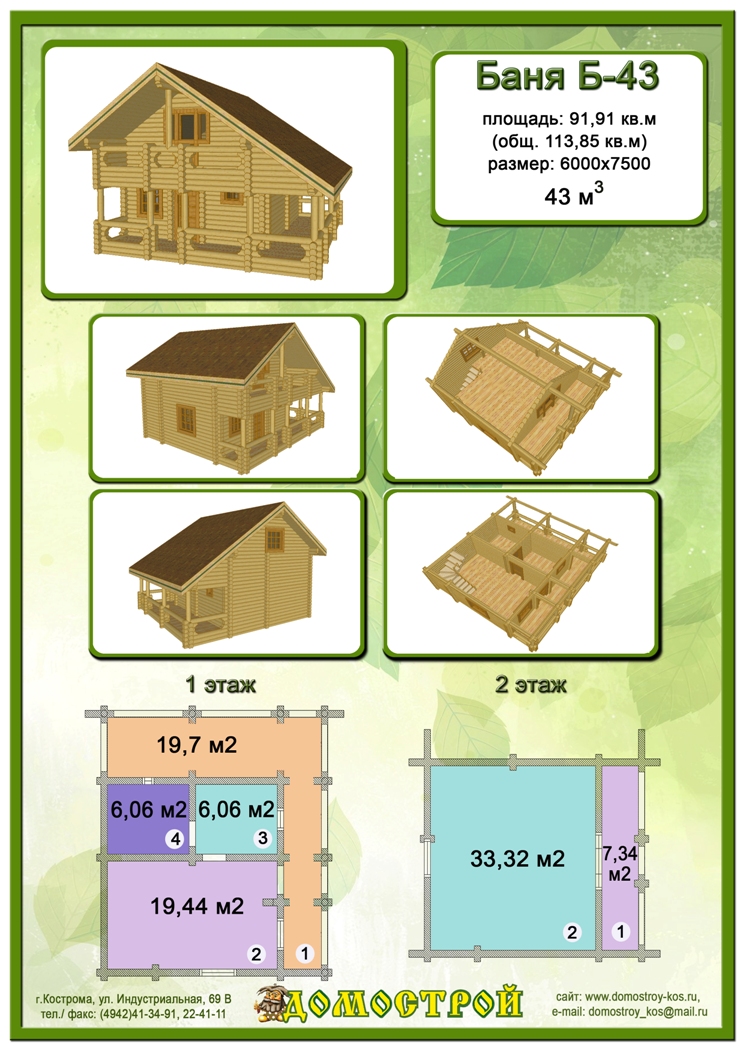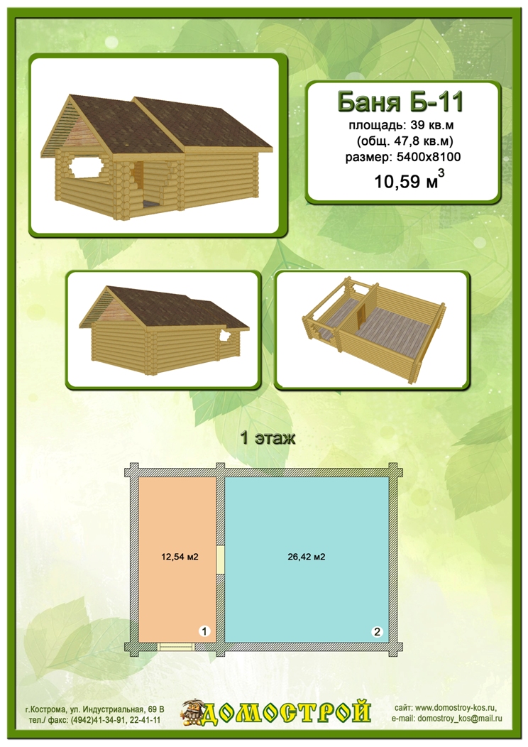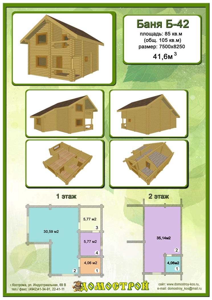 Баня Б-42 Размер: 7500х8250, Бревно D220: 41,6 м3 |