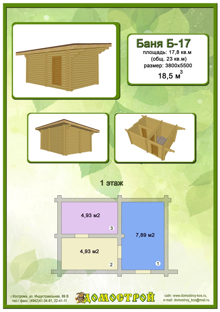 Дом Б-17 Размер: 3800х5500, Бревно D200: 18,5 м3 |