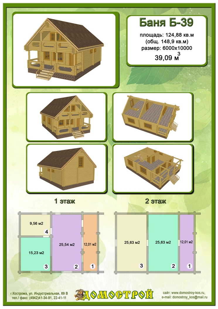 Дом Б-39 Размер: 6000х10000, Бревно D220: 39,09 м3 |