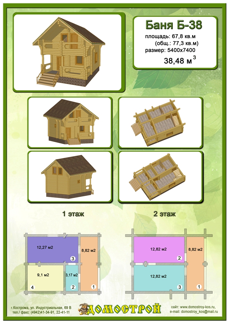 Дом Б-38 Размер: 5400х7400, Бревно D220: 38,48 м3 |
