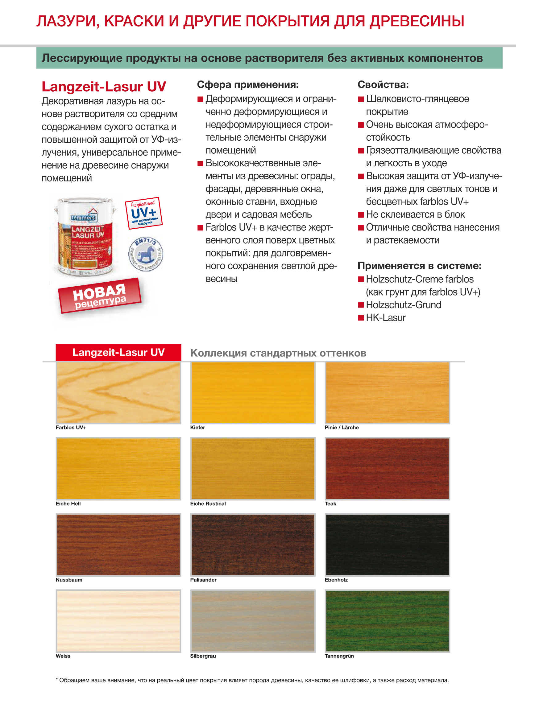 Langzeit-Lasur UV Remmers Шелковисто-глянцевая лазурь на основе растворителя, выкрасы на сосне.