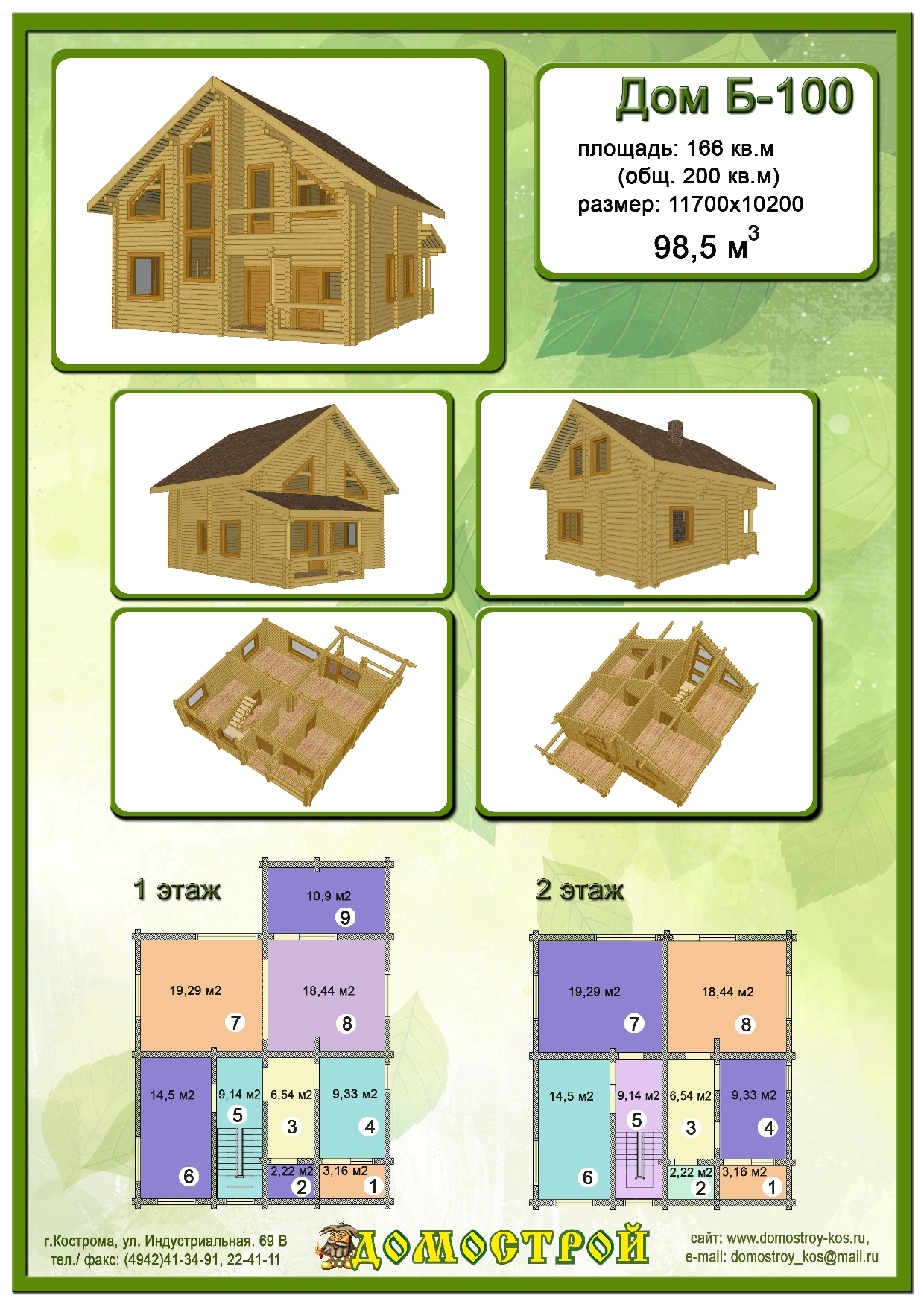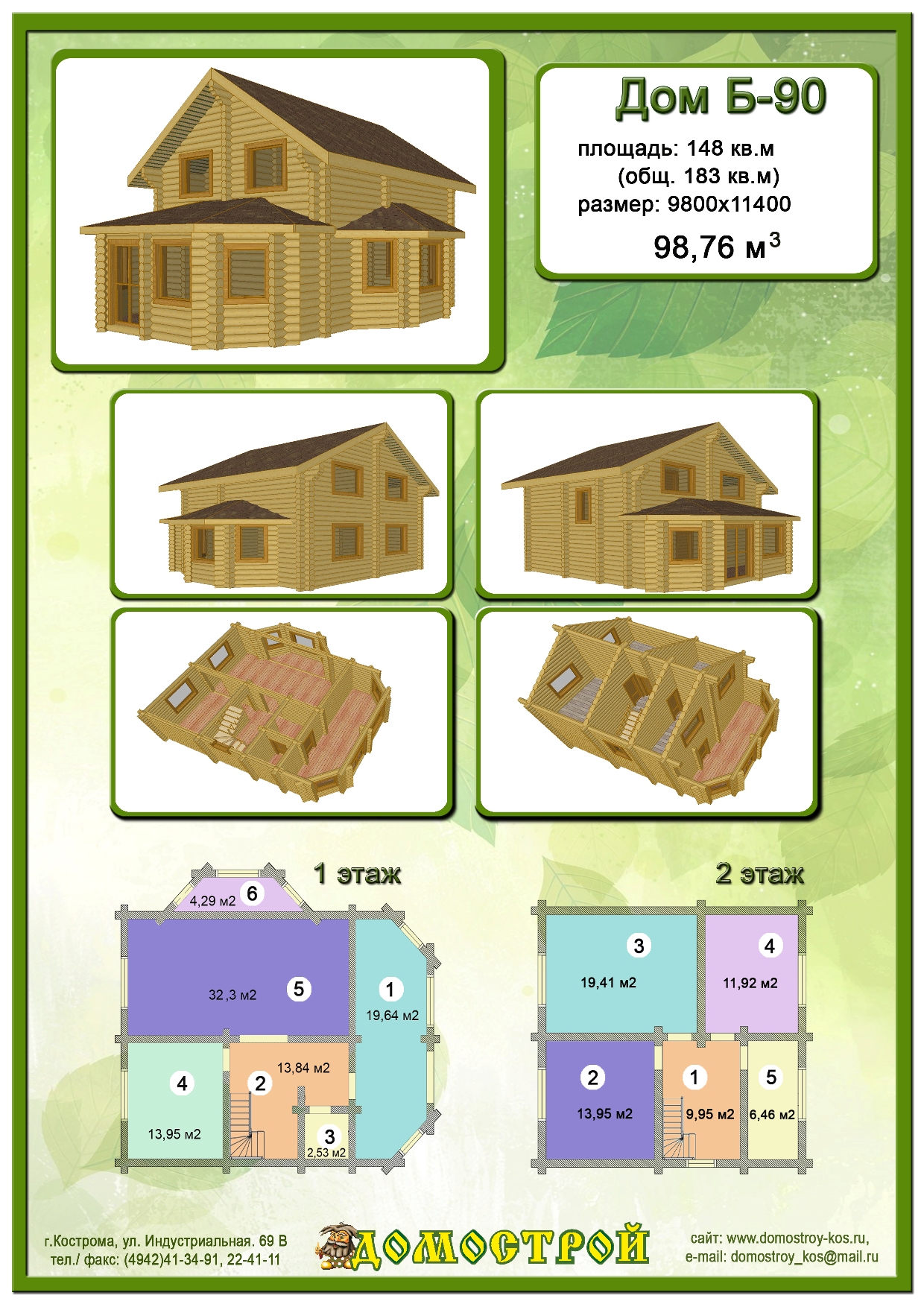 Дом Б-90 Размер: 9800х1140000, Бревно D260: 98,76 м3 |