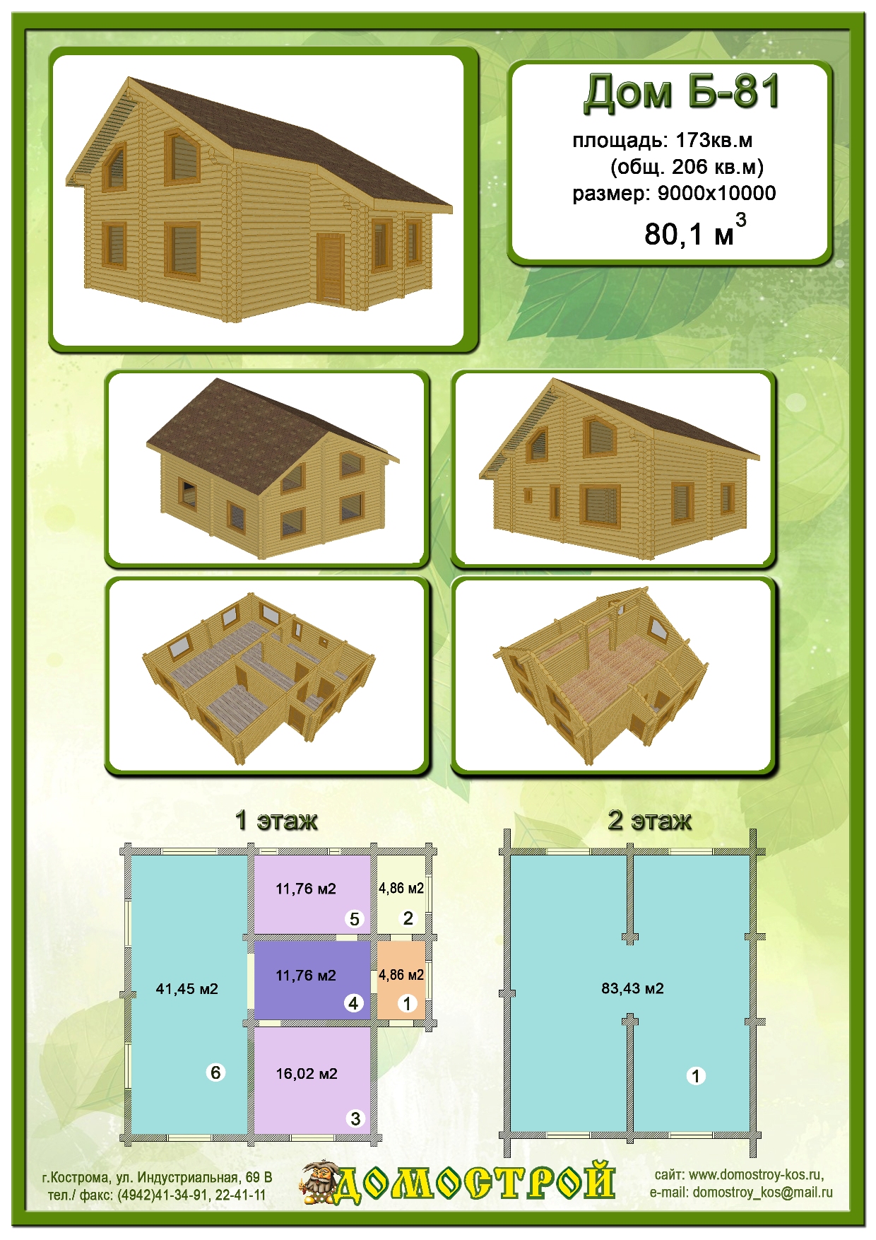 Дом Б-81 Размер: 9000х10000, Бревно D240: 80,1 м3 |