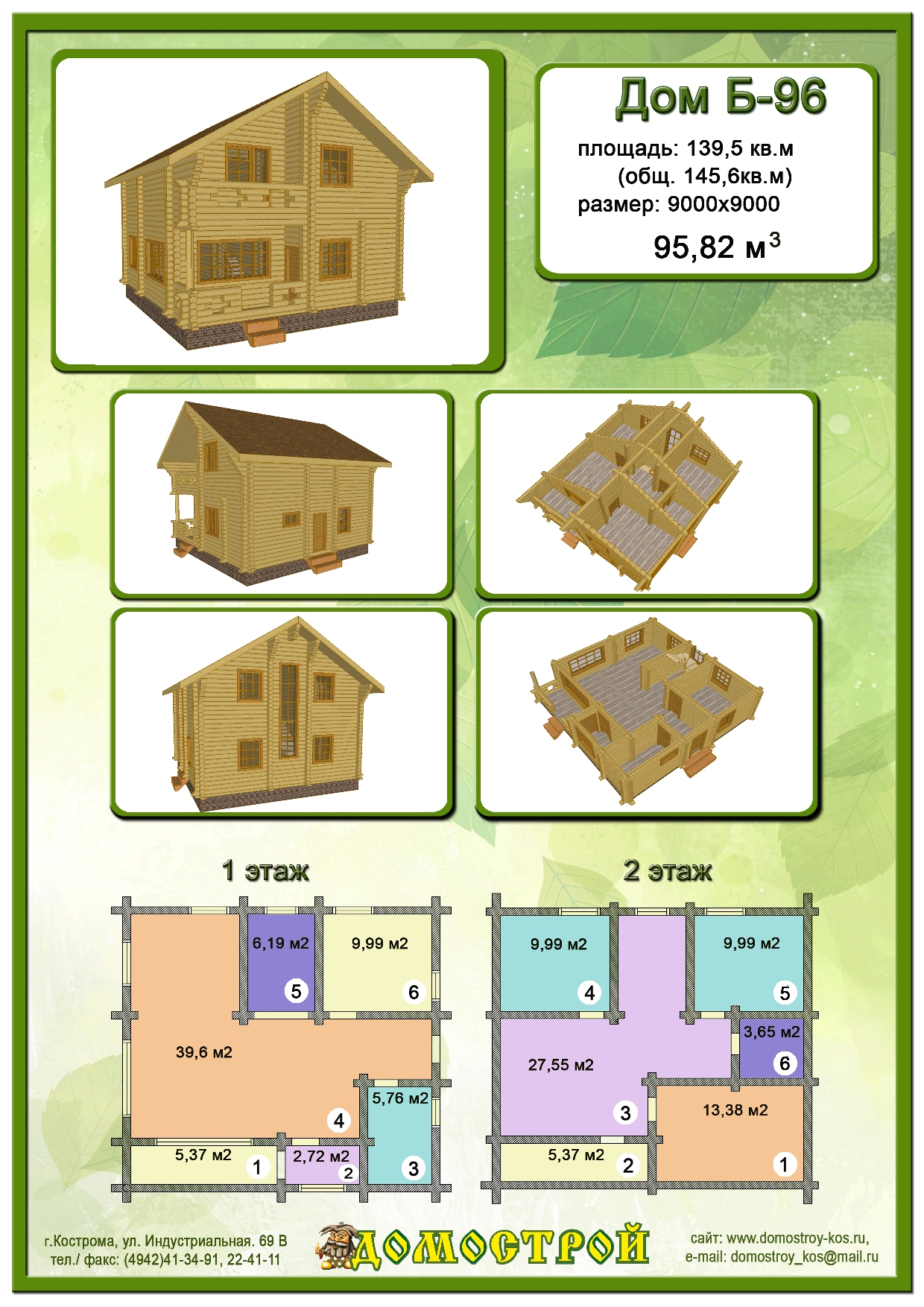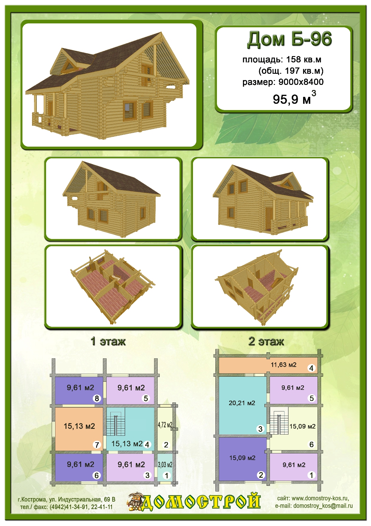 Дом Б-96 Размер: 9000х9000, Бревно D240: 95,82 м3 |