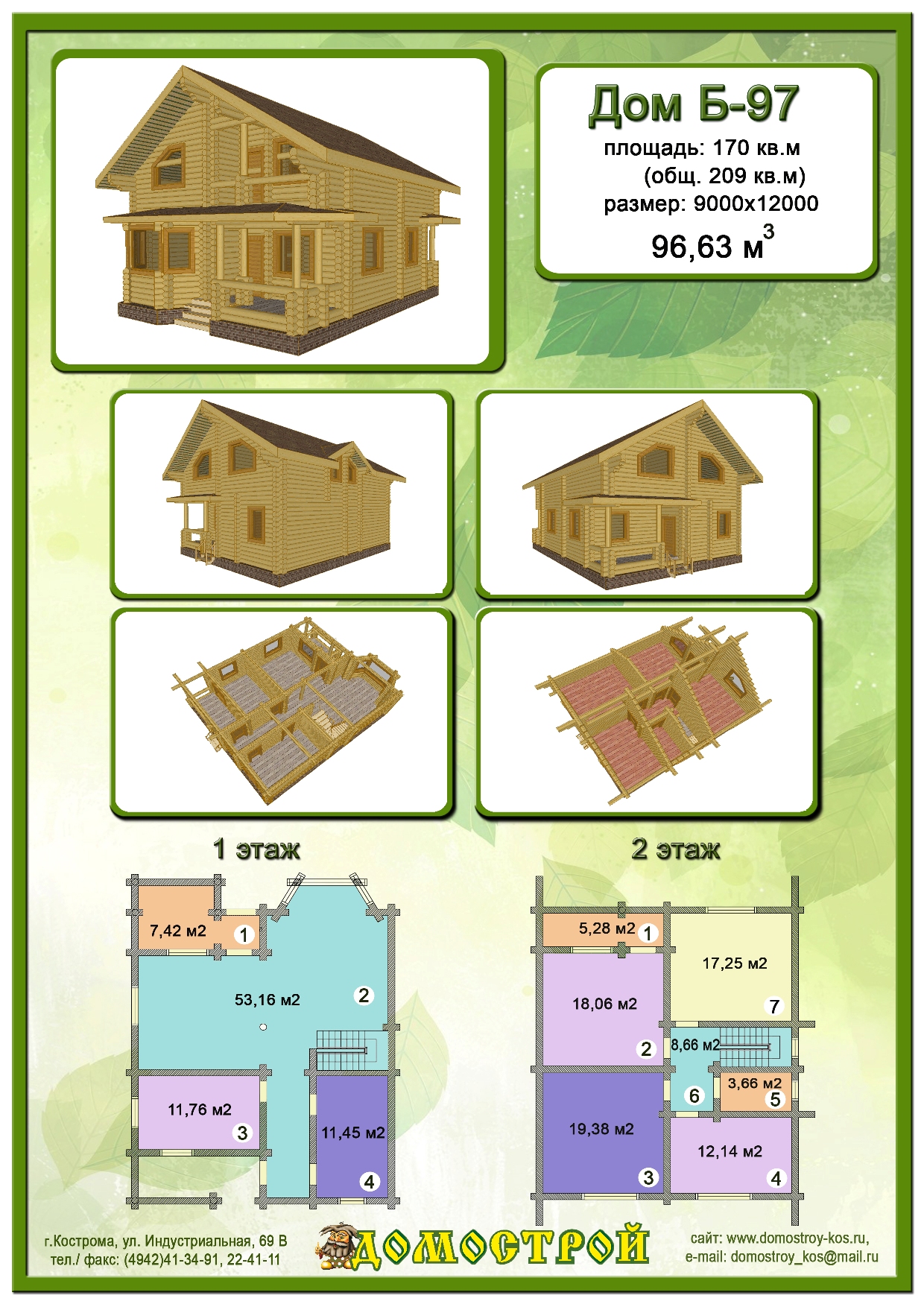 Дом Б-97 Размер: 9000х12000, Бревно D240: 96,63 м3 |