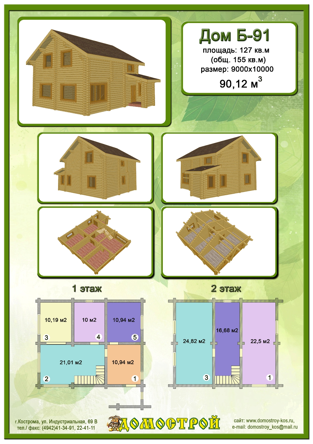 Дом Б-91 Размер: 9000х10000, Бревно D260: 90,12 м3 |