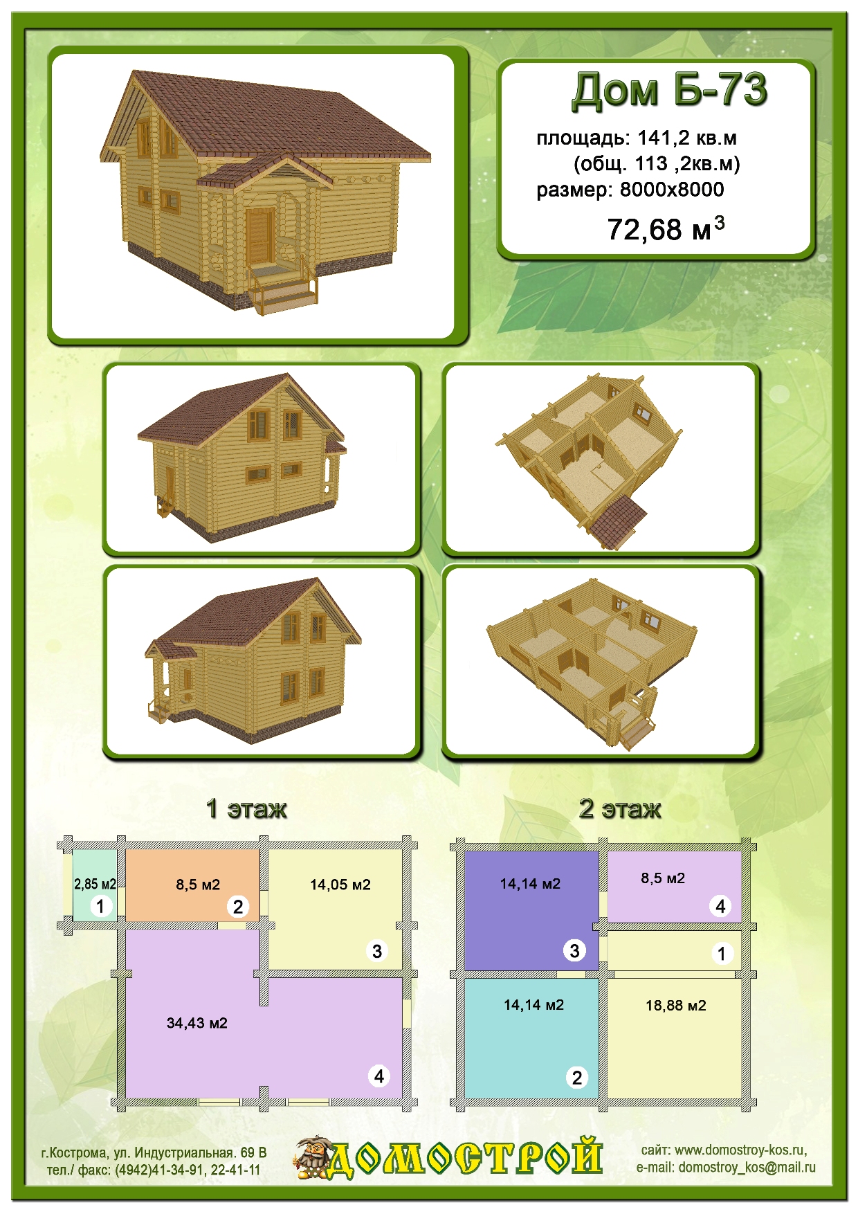 Дом Б-73 Размер: 8000х8000, Бревно D240: 72,68 м3 |