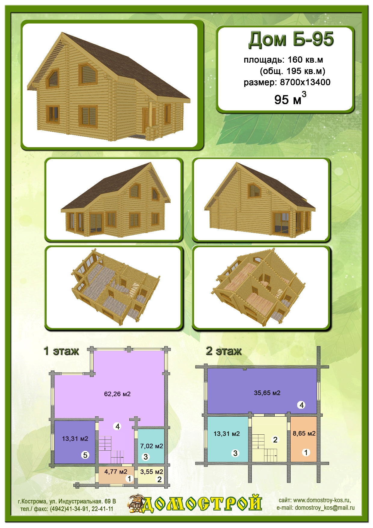 Дом Б-95 Размер: 8700х13400, Бревно D260: 95 м3 |