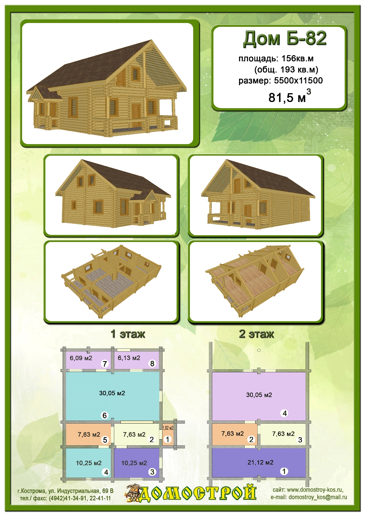 Дом Б-82 Размер: 8000х12000, Бревно D260: 81,5 м3 |